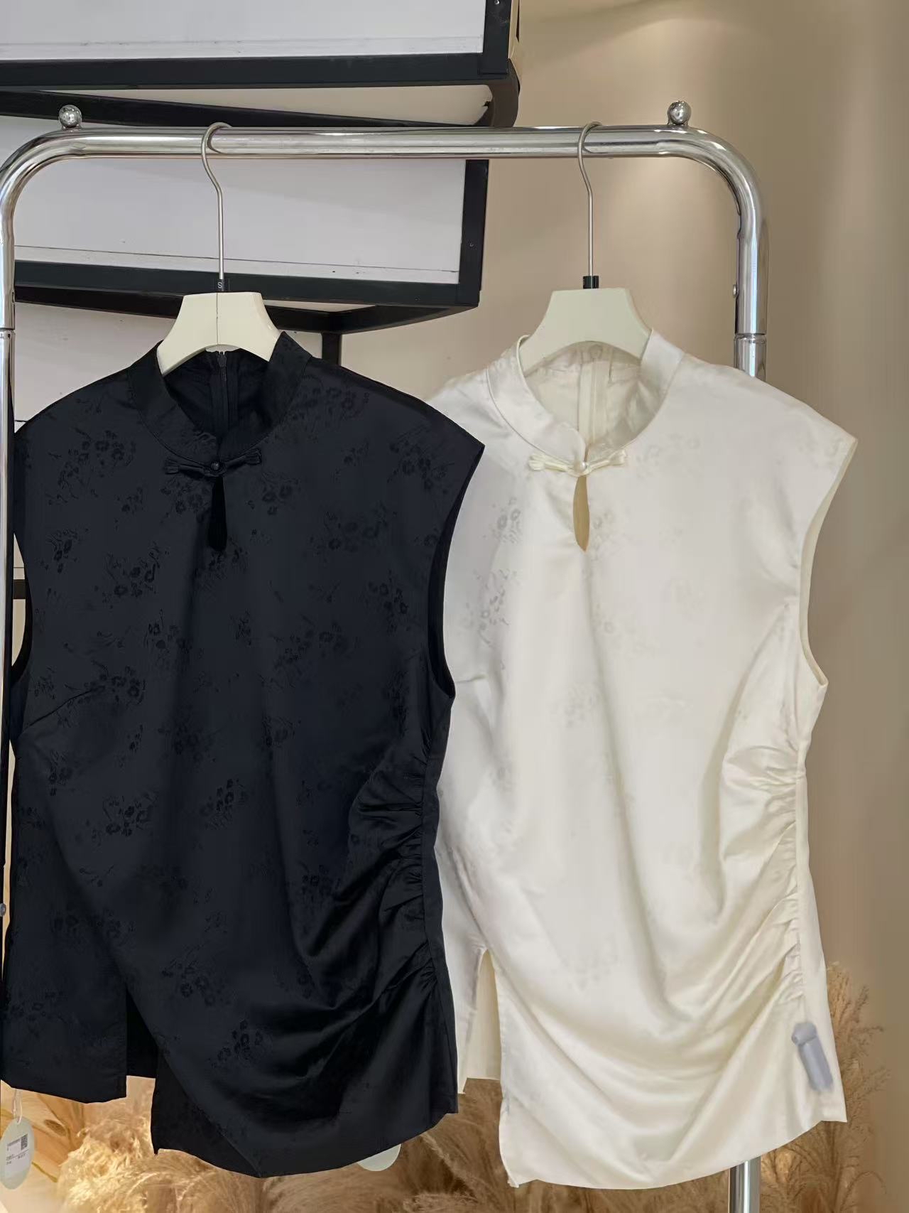 不规则缎面旗袍上衣 size S:胸围80cm 腰围76cm 衣长62cm size M:胸围84cm 腰围80cm 衣长64cm size L:胸围88cm 腰围84cm 衣长65cm