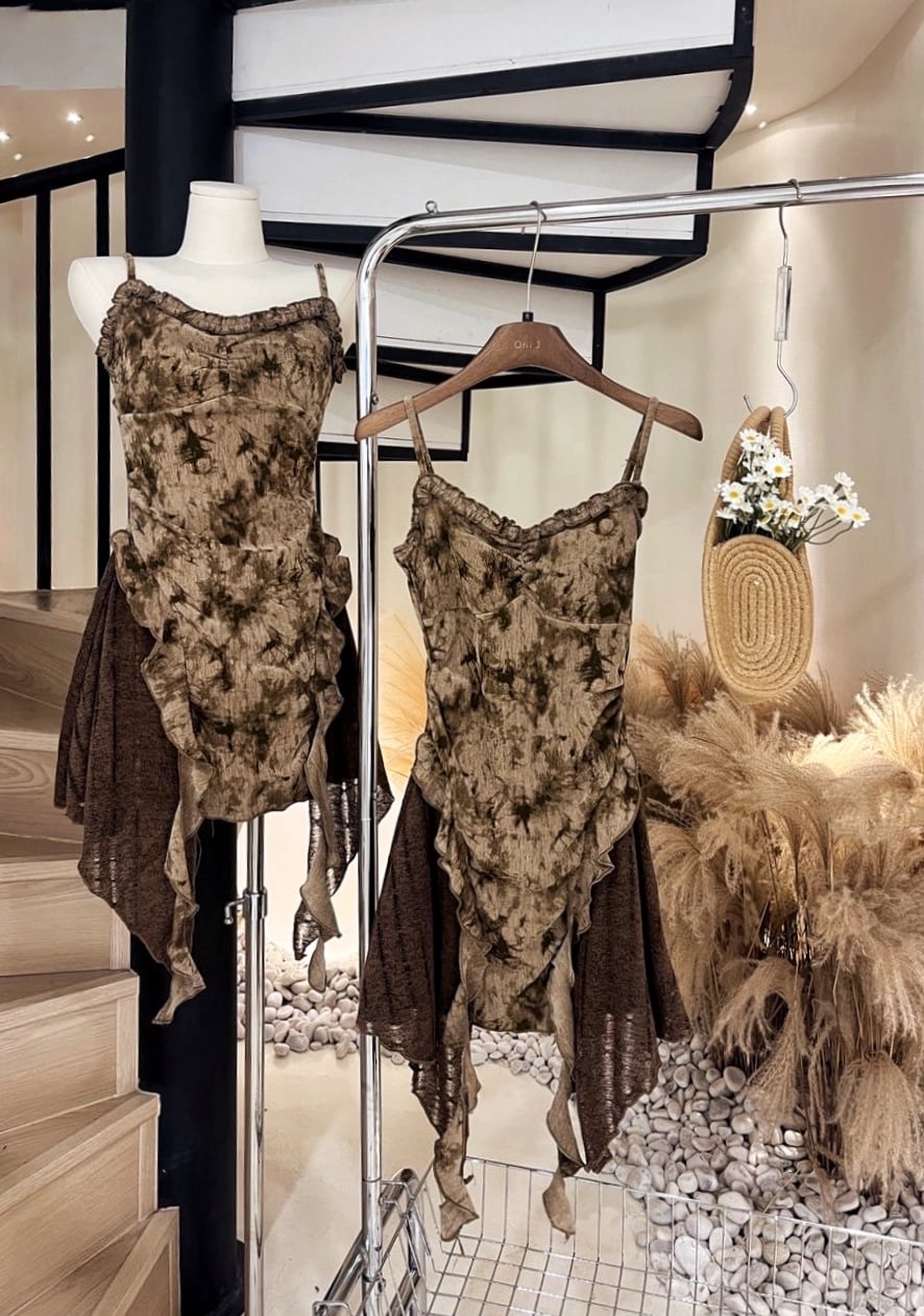 扎染吊带连身裙