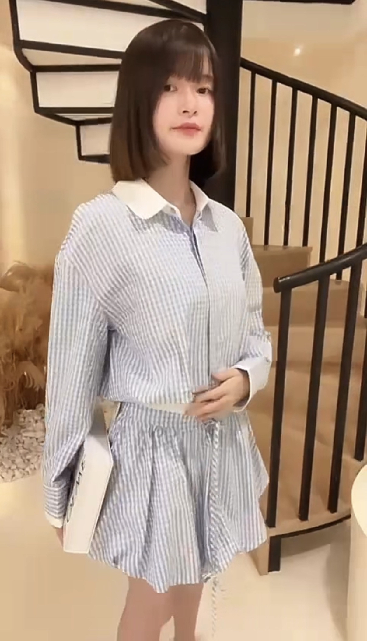 S Size 上衣 胸围102cm 腰围65cm 长度53cm 短裙 腰围68cm 臀围84cm 长度34cm M Size 上衣 胸围106cm 腰围70cm 长度53cm 短裙 腰围71cm 臀围88cm 长度36cm