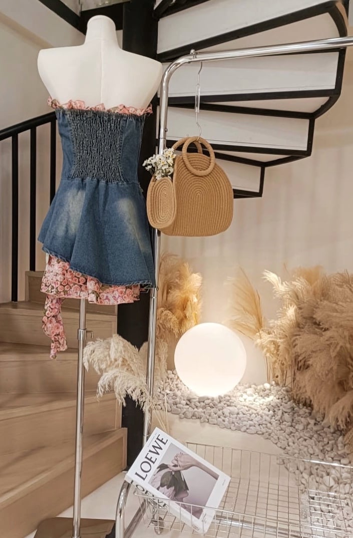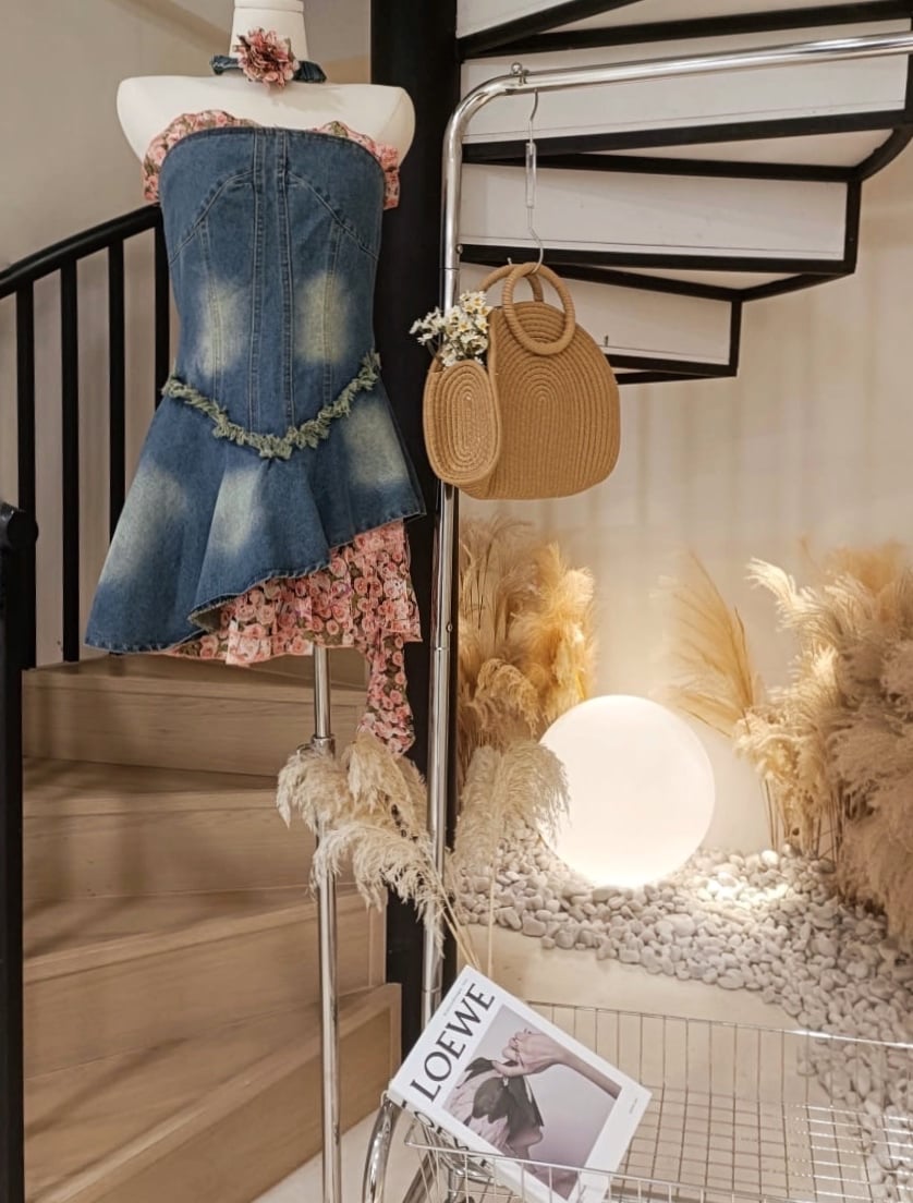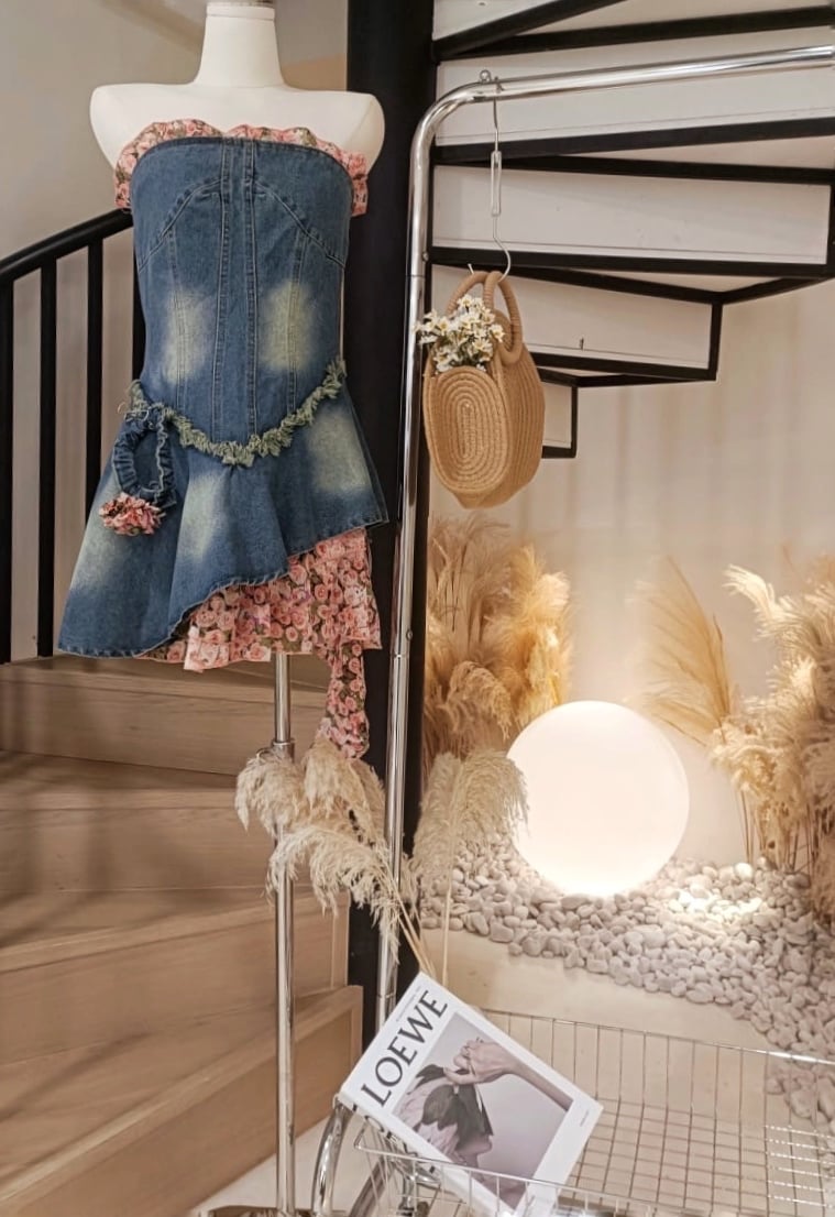 玫瑰抹胸牛仔连身裙(手环)