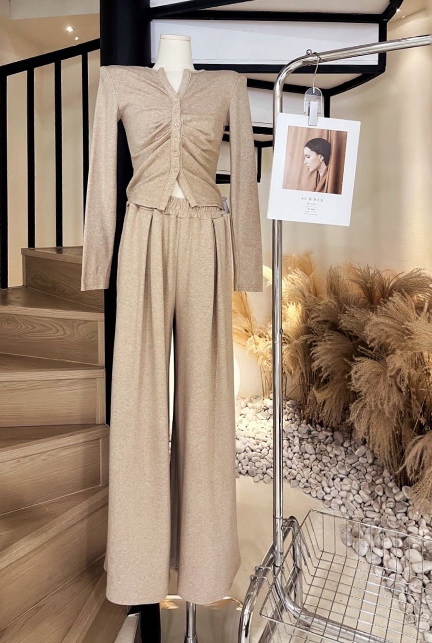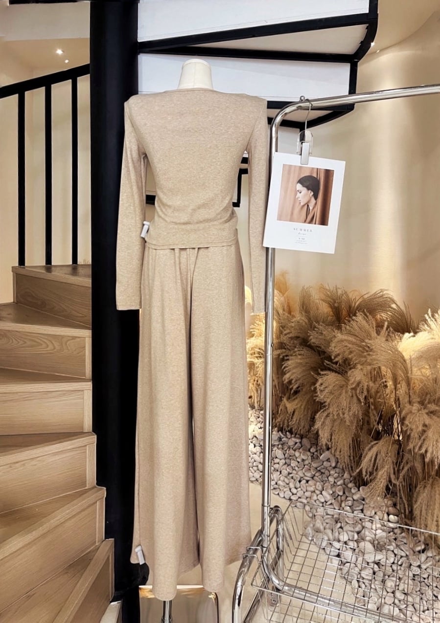 皱褶长袖上衣+弹力长裤(羊绒)
