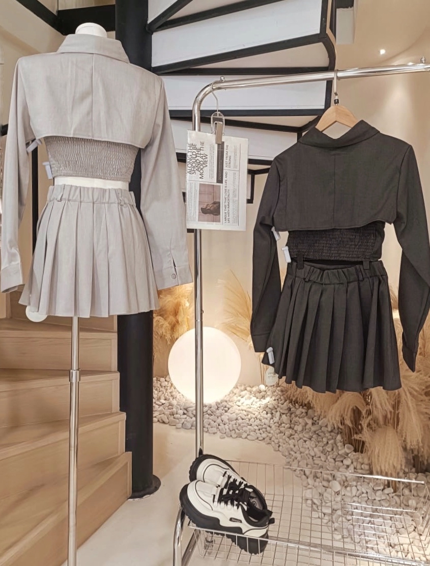 背心 胸围:82cm 腰围:68cm 全长(可调节):36cm 外搭 胸围:86cm 全长:30.5cm 半弹裤裙 腰围:64cm 撑开腰围:76cm 臀围:85cm 全长:35cm