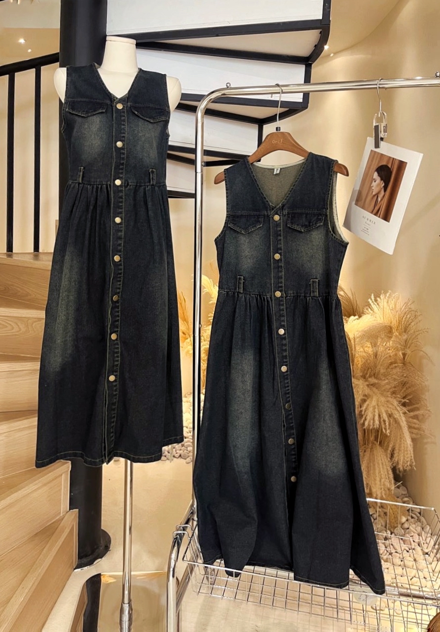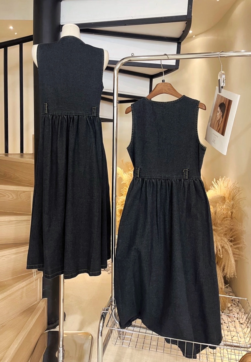 2412 无袖牛仔连身裙